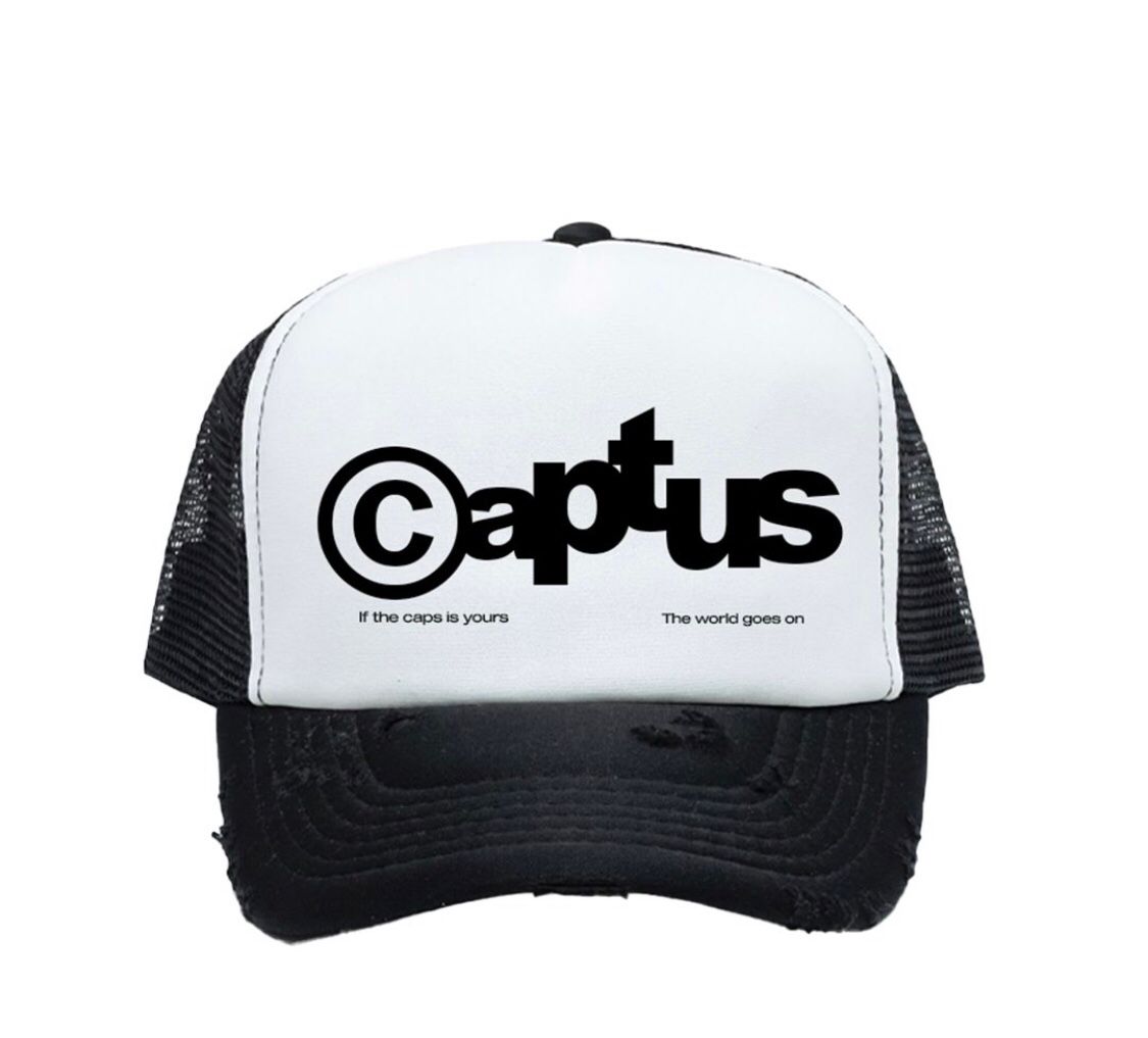 Trucker hat negra con blanco, con estampado de Captus.